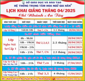 LỊCH KHAI GIẢNG TIẾNG HOA THÁNG 04/2025