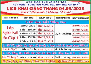 LỊCH KHAI GIẢNG TIẾNG HOA THÁNG 04/2025