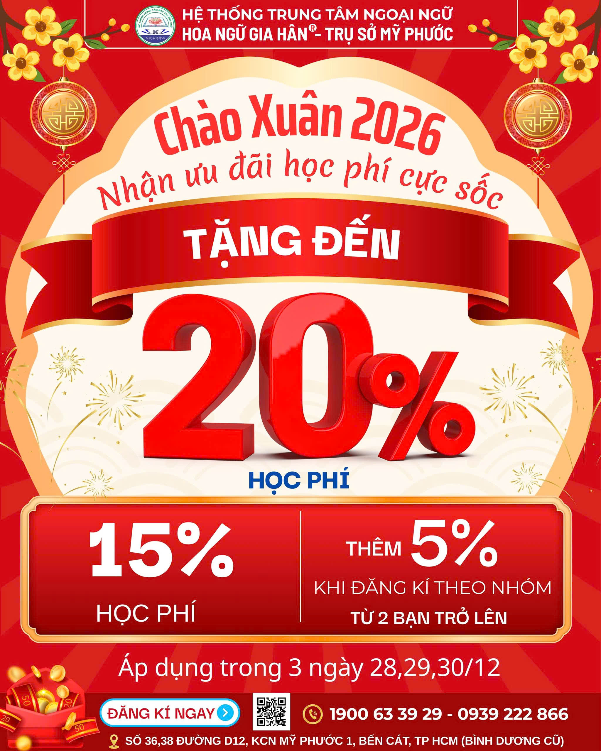 Chào Xuân 2026 – Ưu Đãi Học Phí Tiếng Hoa Bình Dương Lên Đến 20% | Hoa Ngữ Gia Hân